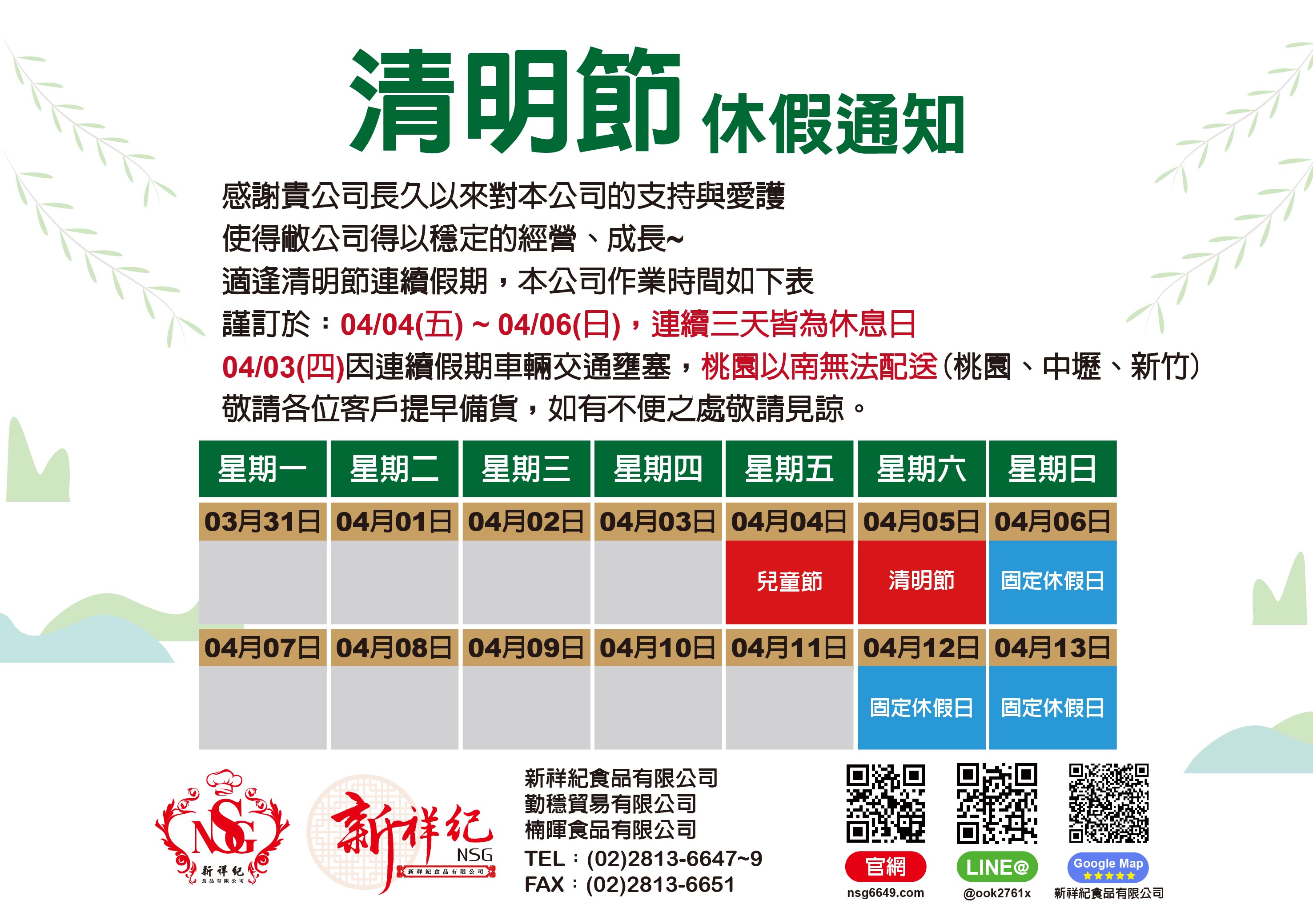 04/04(四) ~ 04/06(日),連續三天皆為休息日